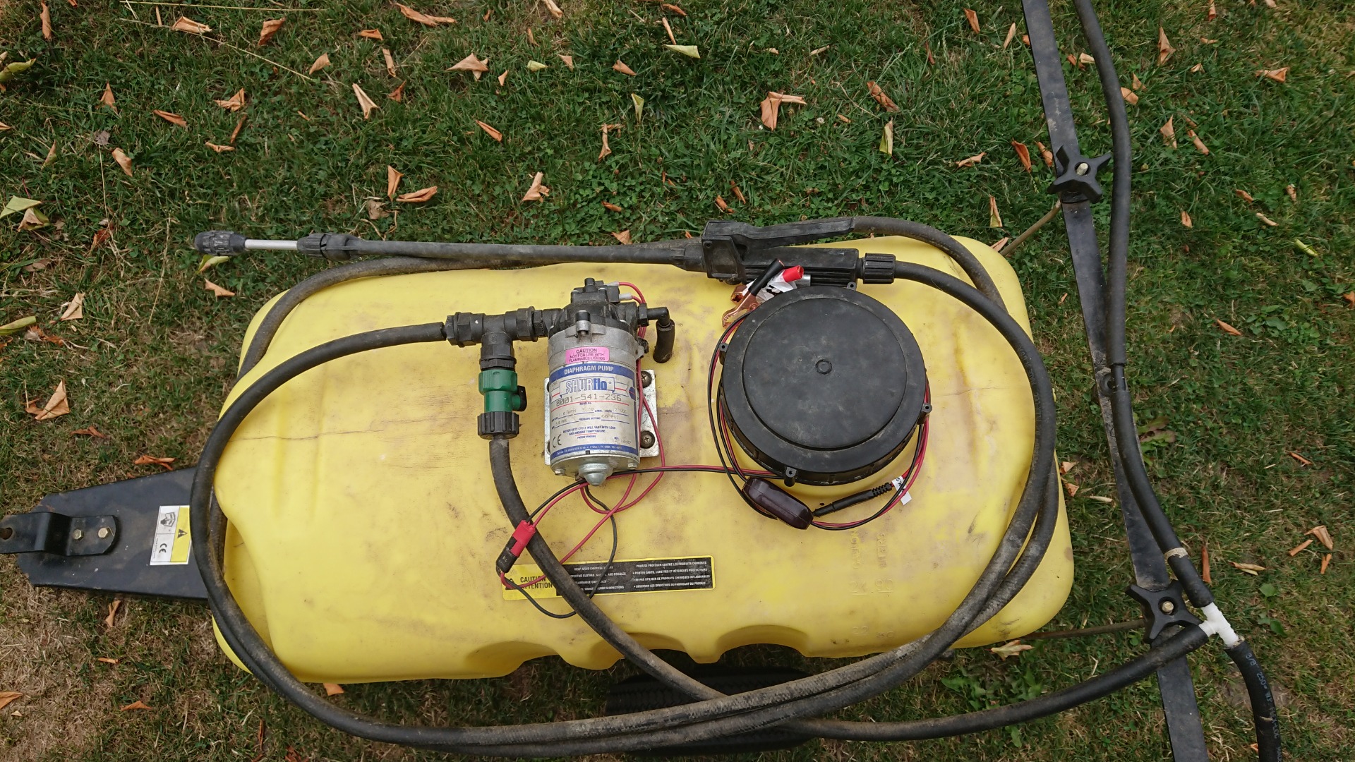 Tažený postřikovač je možno připojit za většinu zahradních traktůrků, napájení čerpadla přes baterii traktůrku. Postřikovač je určen pro ošetření především větších ploch jako jsou hřiště a okrasné trávníky.